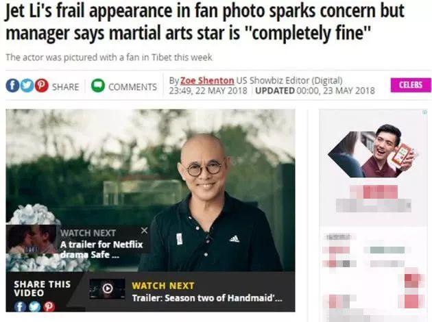 不仅国内媒体争相报道,外国传媒近日也有报道。其中《华盛顿邮报》(Washington Post)找来李连杰的外国经纪人Steven Chasman询问李连杰最近状况,经纪人指是照片拍摄问题,强调李连杰的身体“状态极佳”并回应:“他患有甲亢将近十年。不会危及生命,而他正在处理。”