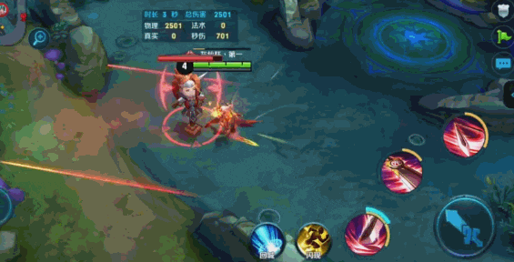 而攻击形态的二技能,就有些逆天了,花木兰会向前连砍四刀,在靠近敌人的时候使用,会让敌人受到击退效果而无法释放技能。