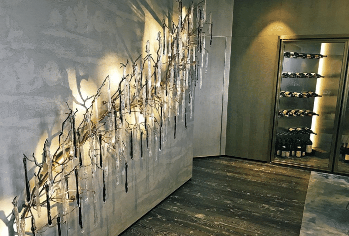 家中一面墙上的装饰品。关之琳介绍说,家里的装修的色调她是找风水大师算过的。