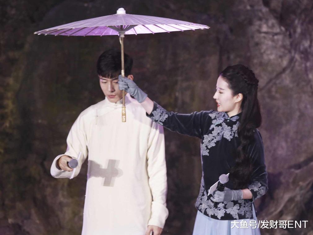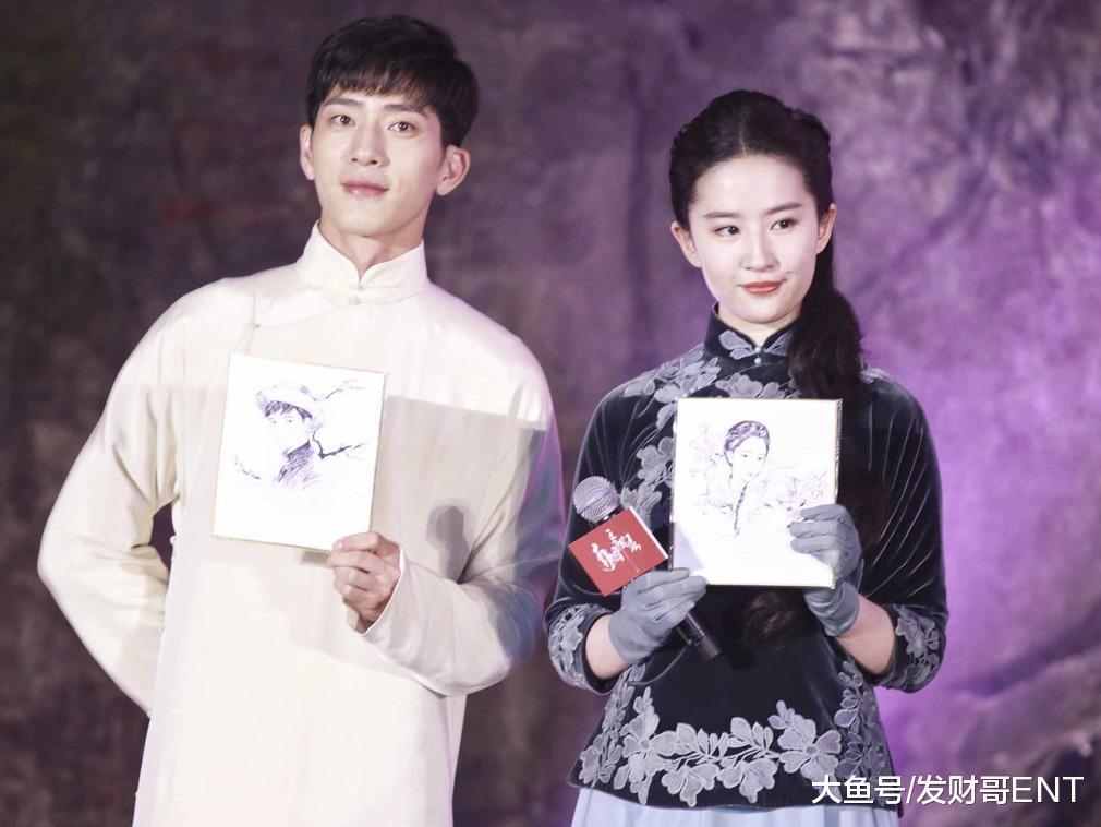 刘亦菲现场一身民国服饰,复古味道十足,与穿白色长衫的井柏然同台亮相。(图源:VCG)